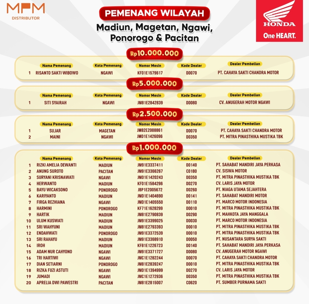 Artikel Program Undian Total Hadiah Rp 1,5 Miliar Berakhir, Berikut Pemenangnya. pertama kali tampil pada Madiun Raya.